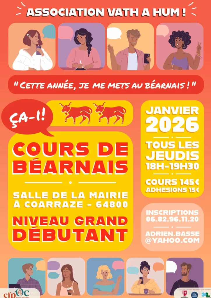 L’associacion Vath a hum, en aliança dab lo CFPÒc Navèra Aquitània, que perpausarà a comptar deu mes de genèr un navèth cors d’occitan-gascon a Coarrasa, taus debutants !