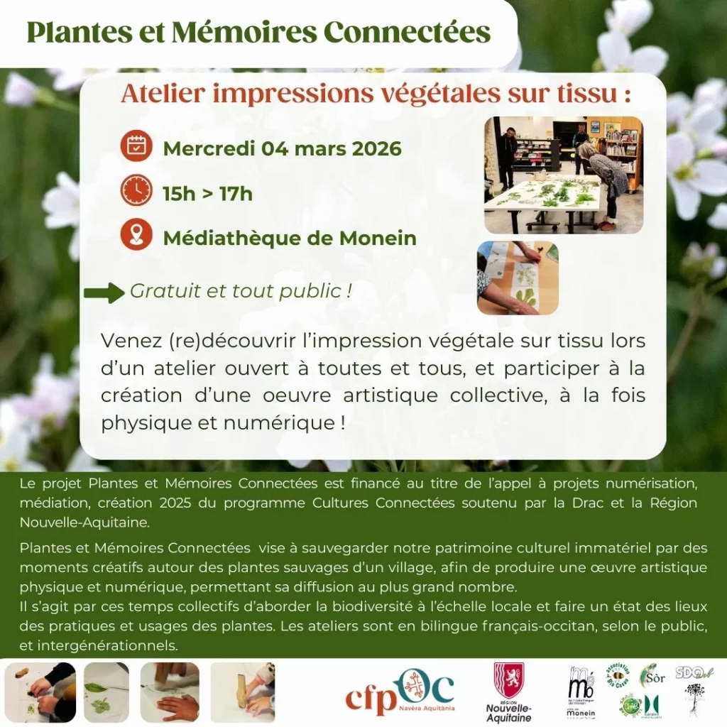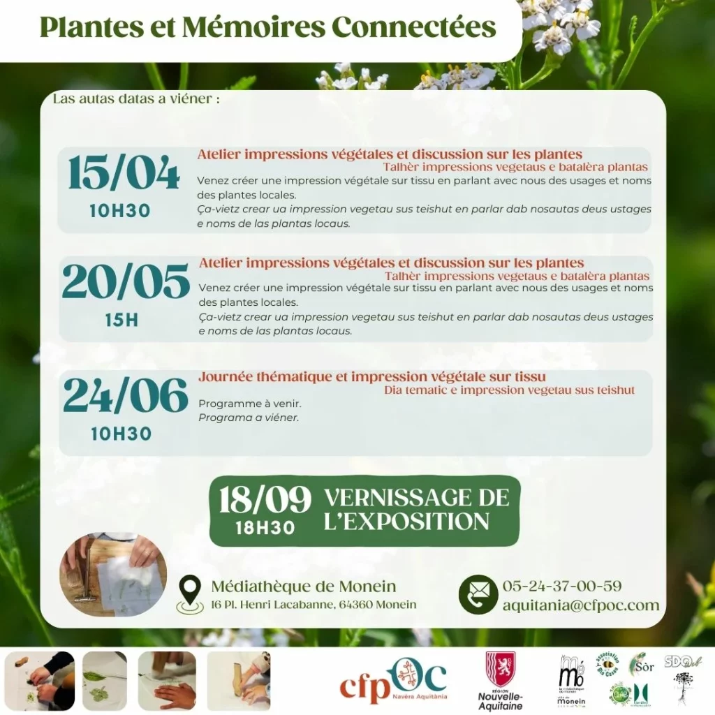 Les plantes sauvages poussent et les ateliers ouverts à toutes et tous et gratuits reviennent à la Médiathèque de Monein à partir de demain !