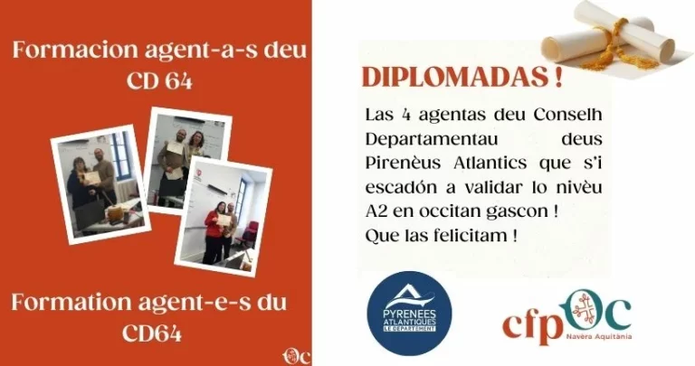 Lo CFPÒc Navèra Aquitània qu’ei sostienut peu Departament deus Pirenèus Atlantics e per la Region Navèra Aquitània
